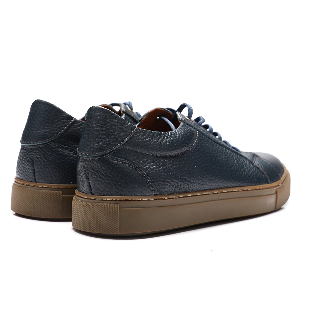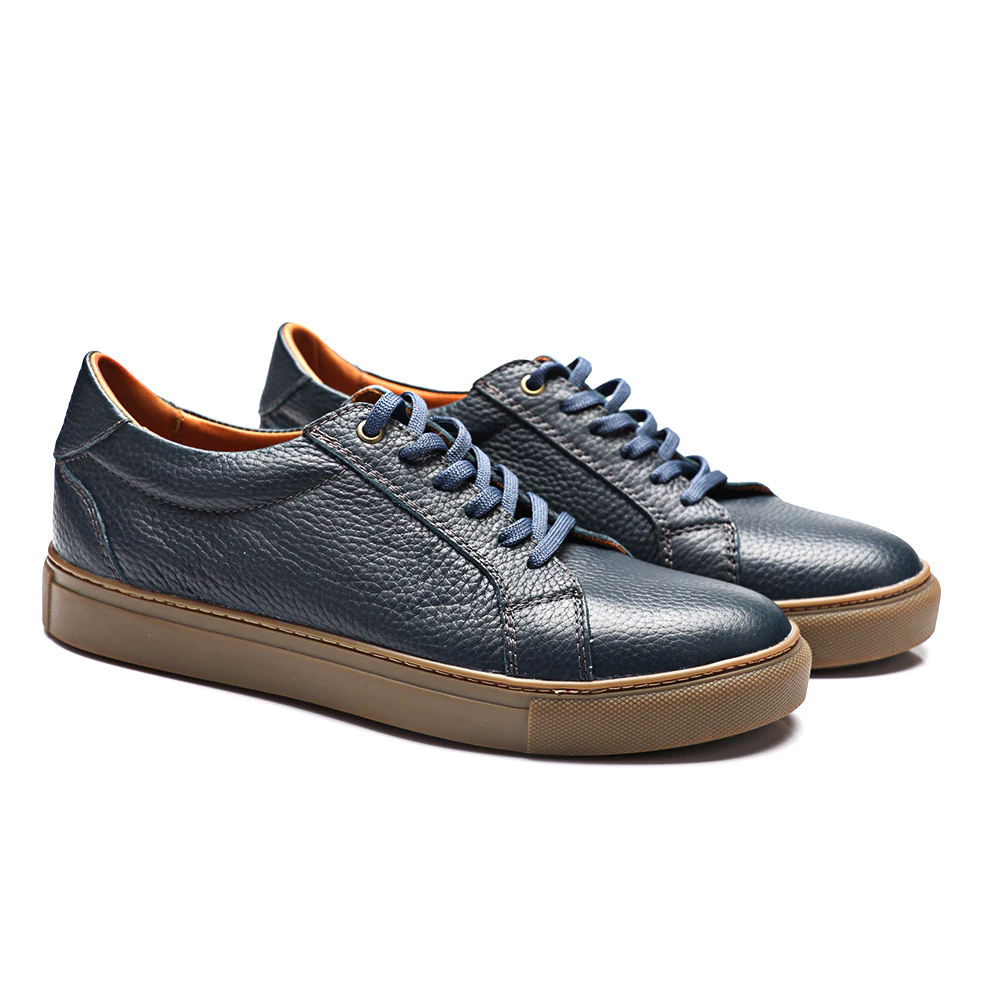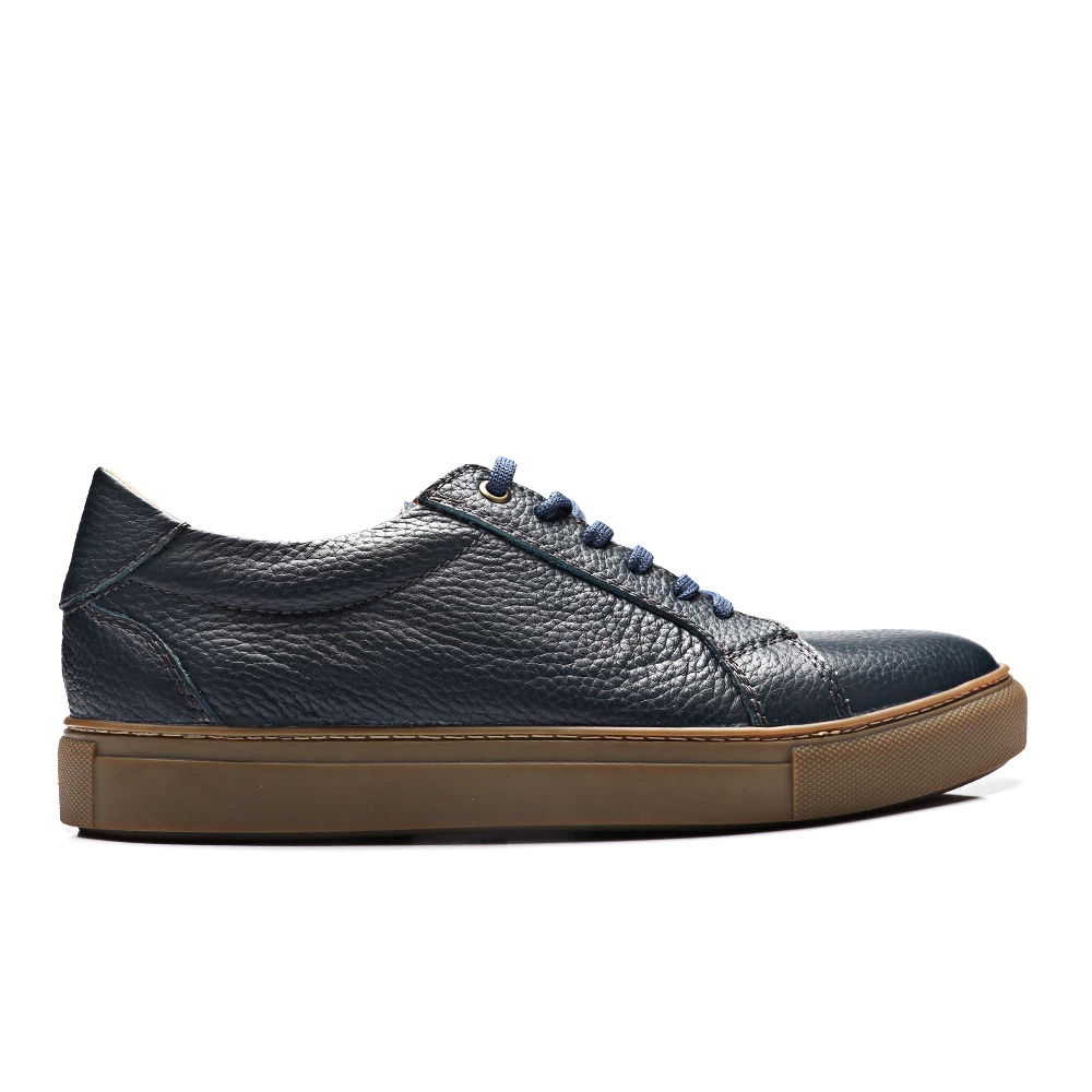 Zapatilla urbana confeccionada en cuero vacuno de suave textura. Acordonada. Sobre base de goma pegada y cosida.