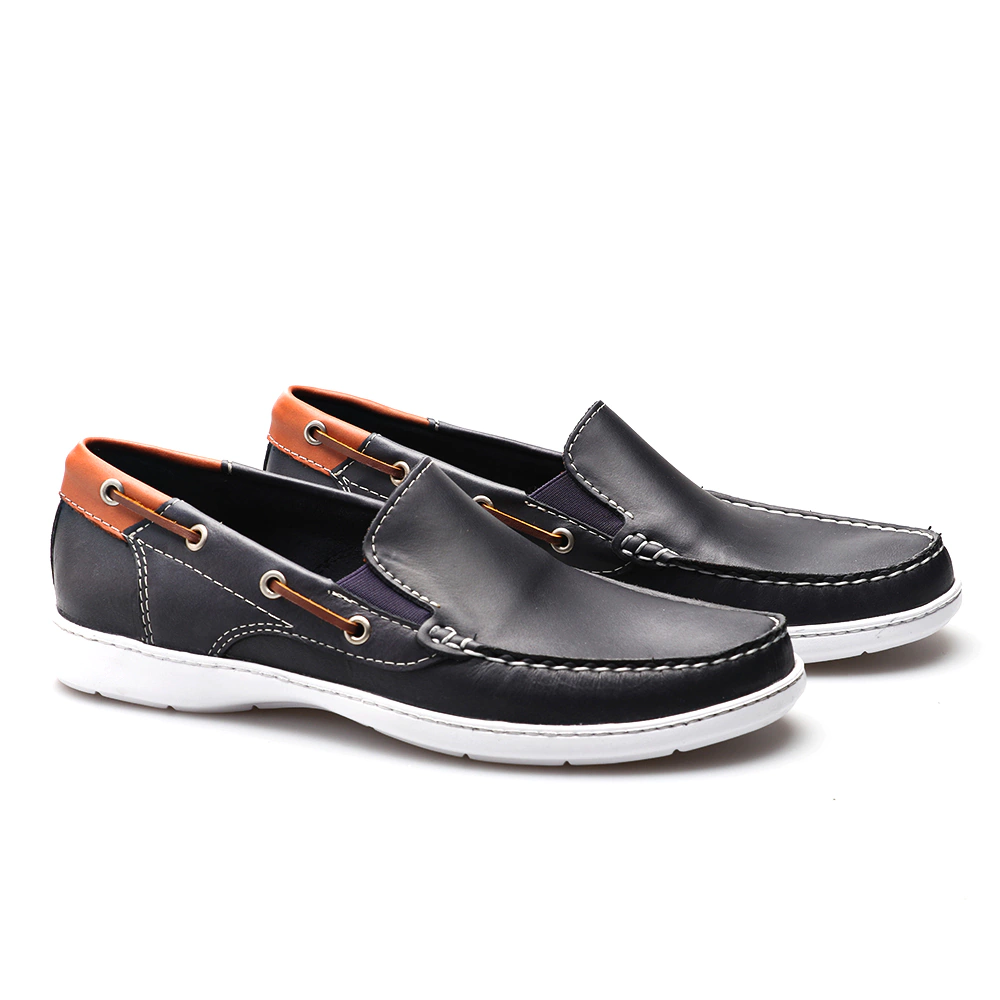 Náutico elastizado confeccionado en cuero vacuno de suave textura. Posee suela de goma extra liviana para mayor comodidad.