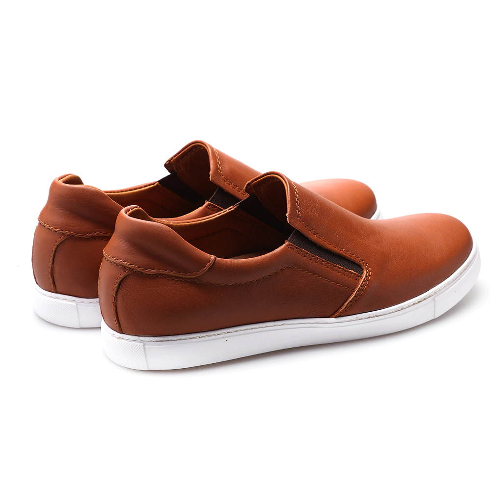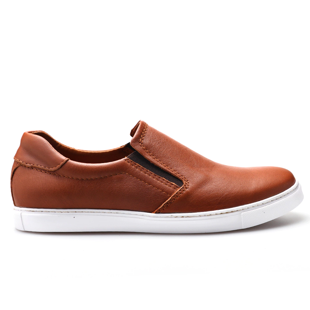 Pancha confeccionada en cuero vacuno de suave textura. El acceso es mediante un doble elástico.