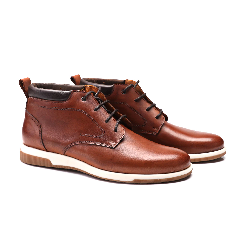 Bota urbana acordonada confeccionada en cuero de suave textura, trabajada artesanalmente sobre suela de goma bicolor. Ideal para quienes buscan un calzado urbano con estilo y comodidad.