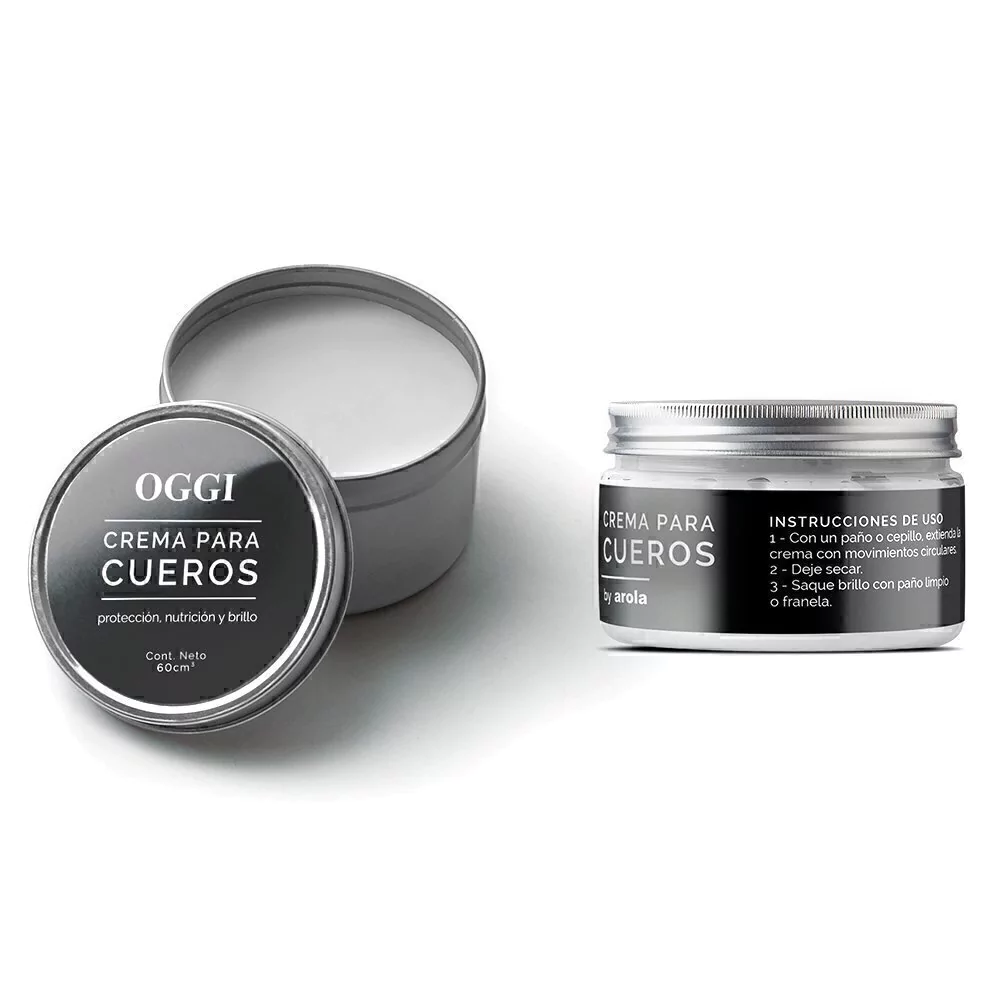 Crema elaborada especialmente para el cuidado de los zapatos u otros accesorios de cuero vacuno. Ideales para mantener el producto siempre nutrido, protegido y como nuevo. Fabricada para OGGI por la reconocida empresa Arola.