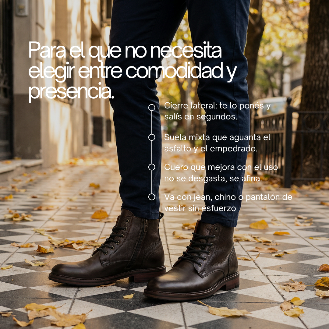 La bota Leif (choco) es perfecta para completar cualquier look, desde el más formal hasta el casual. Cada par refleja el esmero artesanal argentino y la autenticidad de los materiales naturales, por lo que pequeñas variaciones en el tono y las vetas del cuero son características propias que realzan la exclusividad del producto.