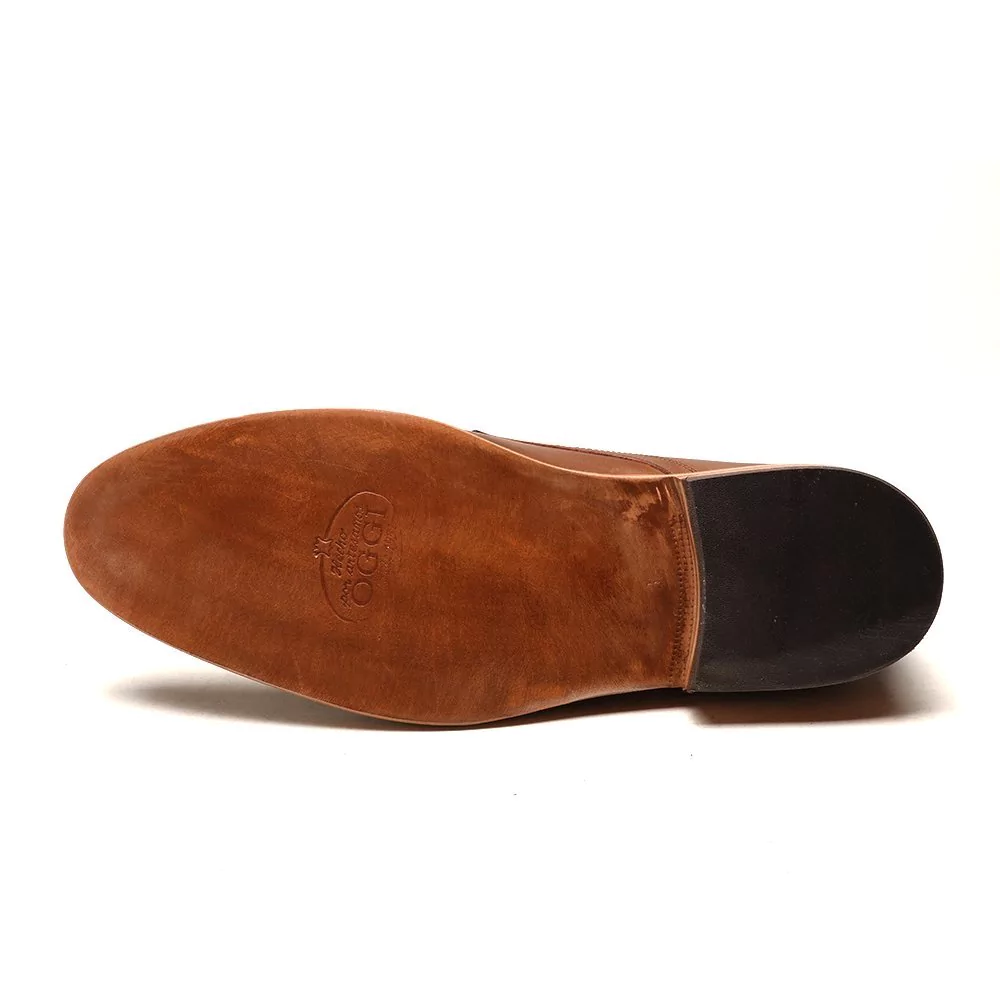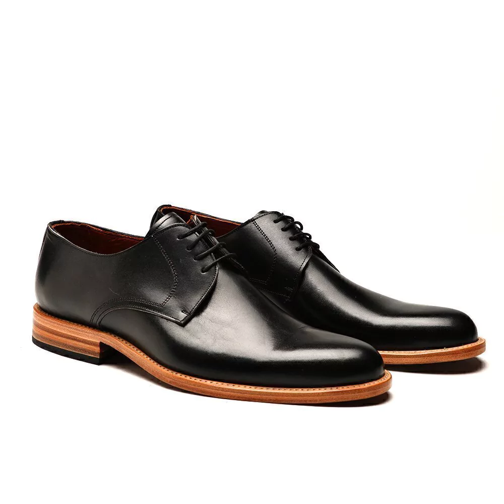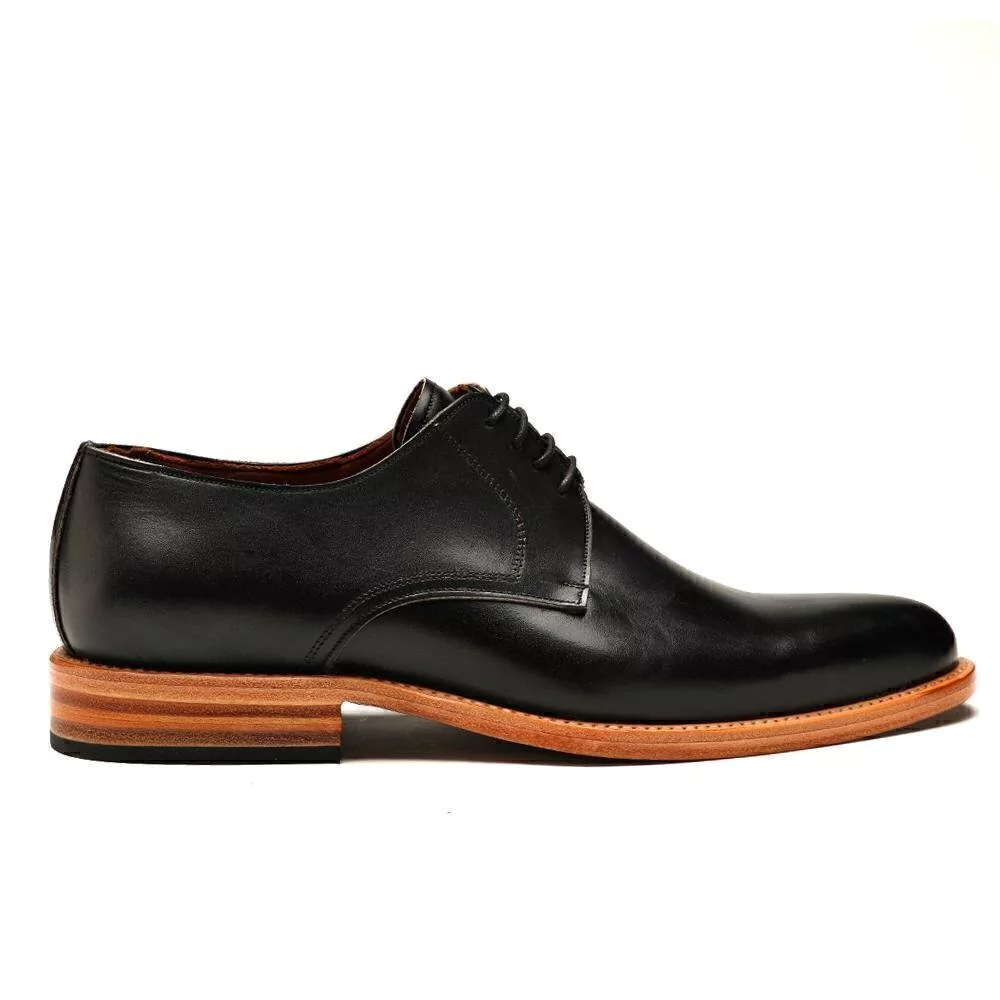 Zapato confeccionado en cuero vacuno semi mate. Elaborado sobre una horma italiana de punta estilizada y moderada. Posee media plantilla de cuero.